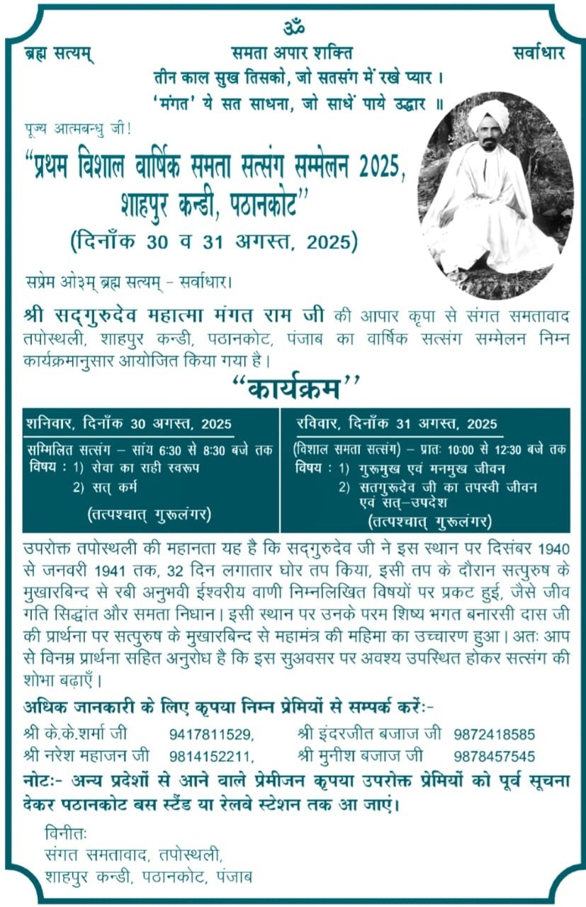 | 2 | Annual Satsang | 30-31 Aug 2025 | CARD | Shahpur kandi | Pathankot | Punjab | India |